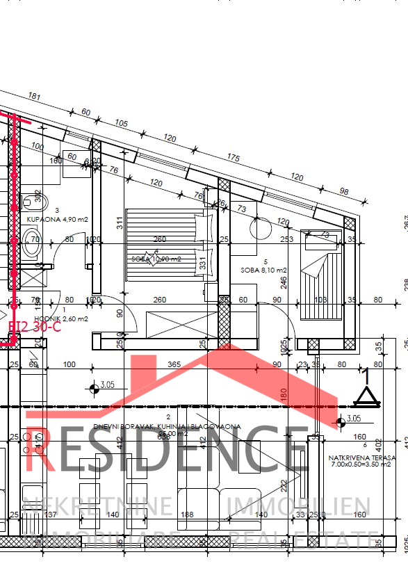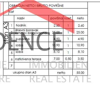 Wir verkaufen eine im bau befindliche wohnung in Pula, im viertel Monte Šerpo, im 1. stock eines kleinen wohngebäudes. Die wohnung hat eine fläche von 57,50 m2 und besteht aus flur, wohnzimmer, küche und esszimmer, badezimmer, 2 schlafzimmern, überdachter terrasse und 1 parkplatz. Heizung/Kühlung: klimaanlage. Geplante fertigstellung der arbeiten im herbst 2026.