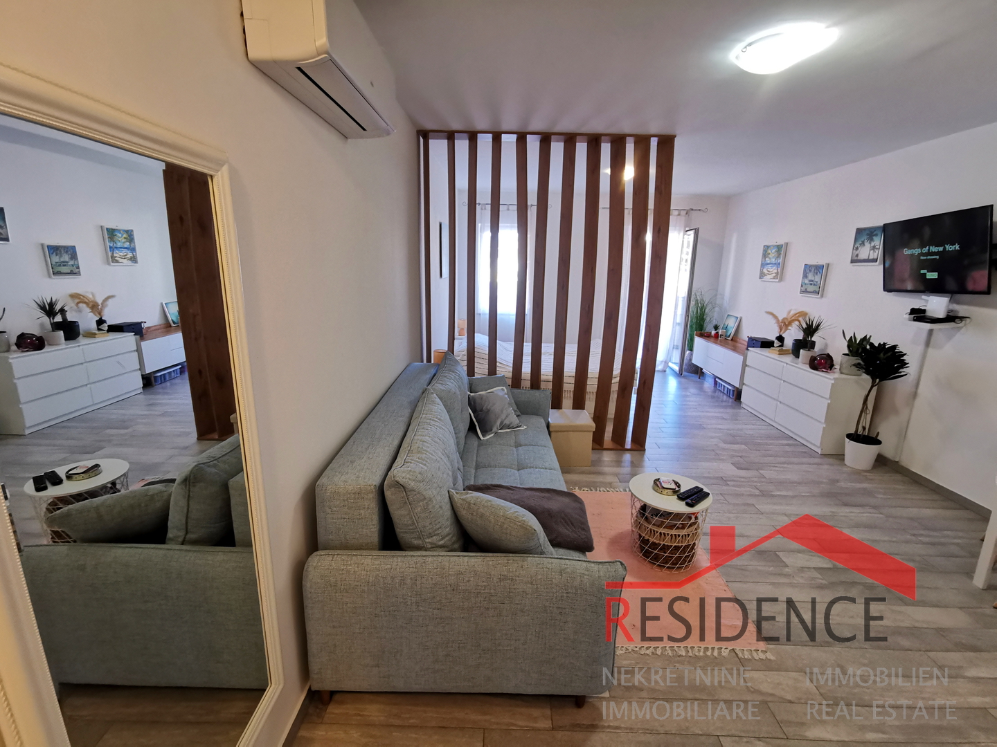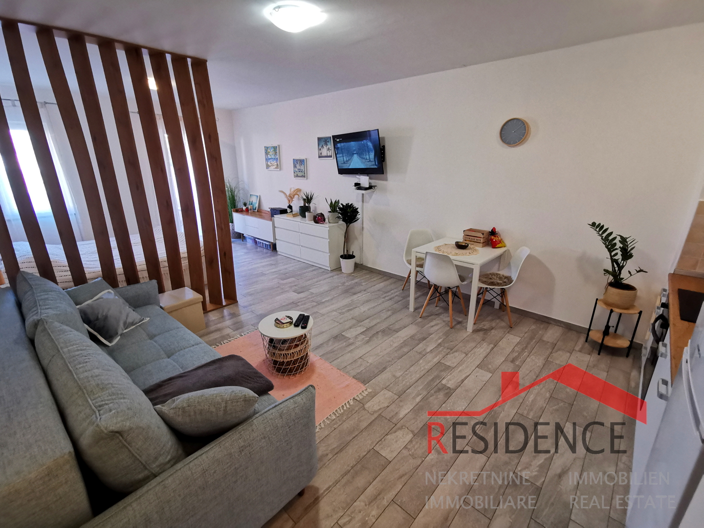 Wir verkaufen eine wohnung im erdgeschoss eines wohngebäudes in Banjole, in der siedlung Volme. Die wohnung hat eine fläche von 43,78 m2 und besteht aus wohnküche, badezimmer, abstellraum und loggia. Zur wohnung gehört auch ein hof fläche von 27 m2. Heizung/Kühlung: klimaanlage. Die wohnung wurde 2021 komplett renoviert. Parkplätze stehen im innenhof des gebäudes zur verfügung. Entfernung zum meer: 200 meter, zu den stränden: 400 meter.