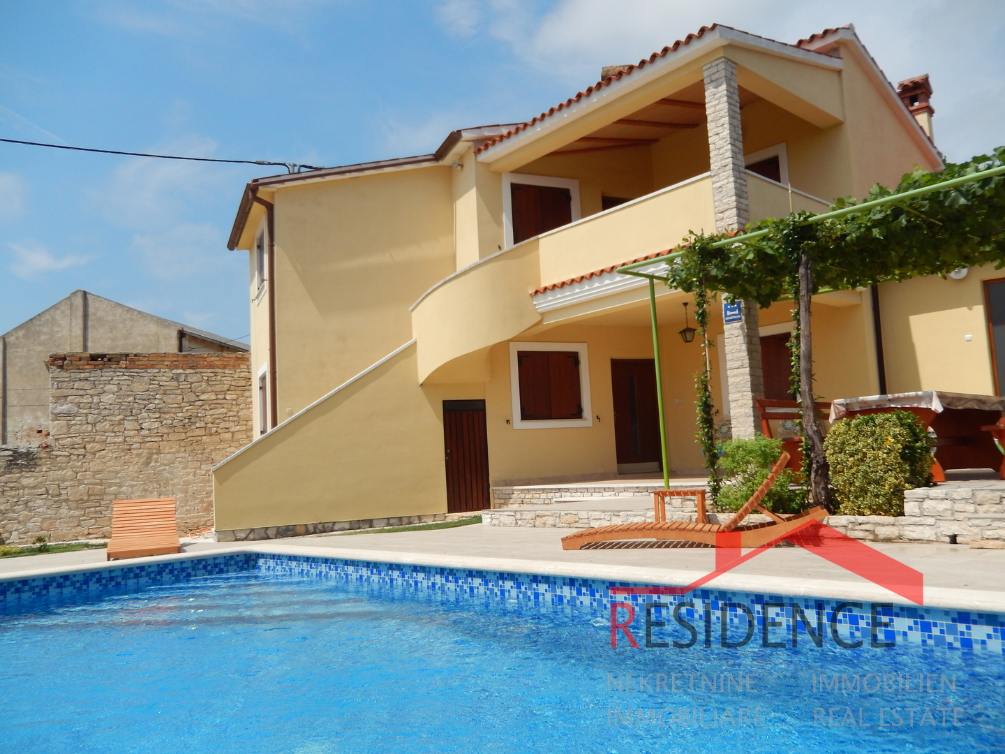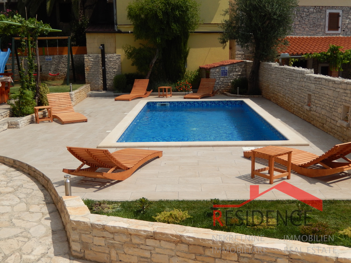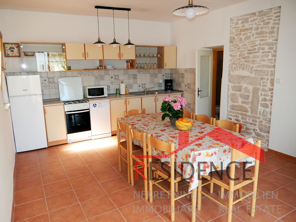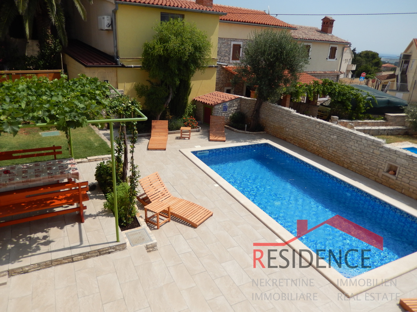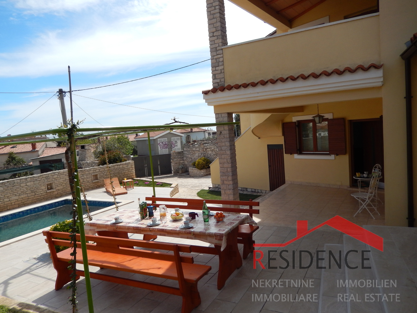 Zum Verkauf steht ein schönes Ferienhaus mit Swimmingpool in Ližnjan. Das Haus verfügt über eine Gesamtfläche von 180 m2, ist einseitig angebaut und nach Süden ausgerichtet, mit teilweisem Meerblick in der Ferne. Die Immobilie besteht aus zwei identischen Wohneinheiten, die sich im Erdgeschoss und im Obergeschoss befinden. Jede Wohneinheit umfasst ein Wohnzimmer mit Küche und Essbereich, zwei Schlafzimmer, ein Badezimmer sowie eine Terrasse. Die Wohnungen sind klimatisiert und für den ganzjährigen Aufenthalt geeignet. Im Haus befinden sich außerdem eine Sommerküche sowie ein Studio-Apartment in der Adaptierungsphase, was die Funktionalität und das Investitionspotenzial der Immobilie zusätzlich erhöht. Das Haus liegt auf einem gepflegten und eingezäunten Grundstück mit einer Fläche von 495 m2, das einen 24 m2 großen Swimmingpool sowie einen gemauerten Grill umfasst und ideal zum Entspannen und Beisammensein ist. Die Entfernung zum Meer beträgt 1 km, Geschäfte, Restaurants und weitere Einrichtungen befinden sich in unmittelbarer Nähe. Eine ausgezeichnete Gelegenheit zur Eigennutzung oder als Investition zur touristischen Vermietung.