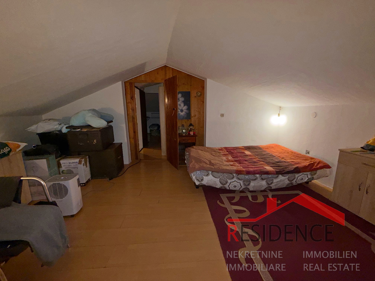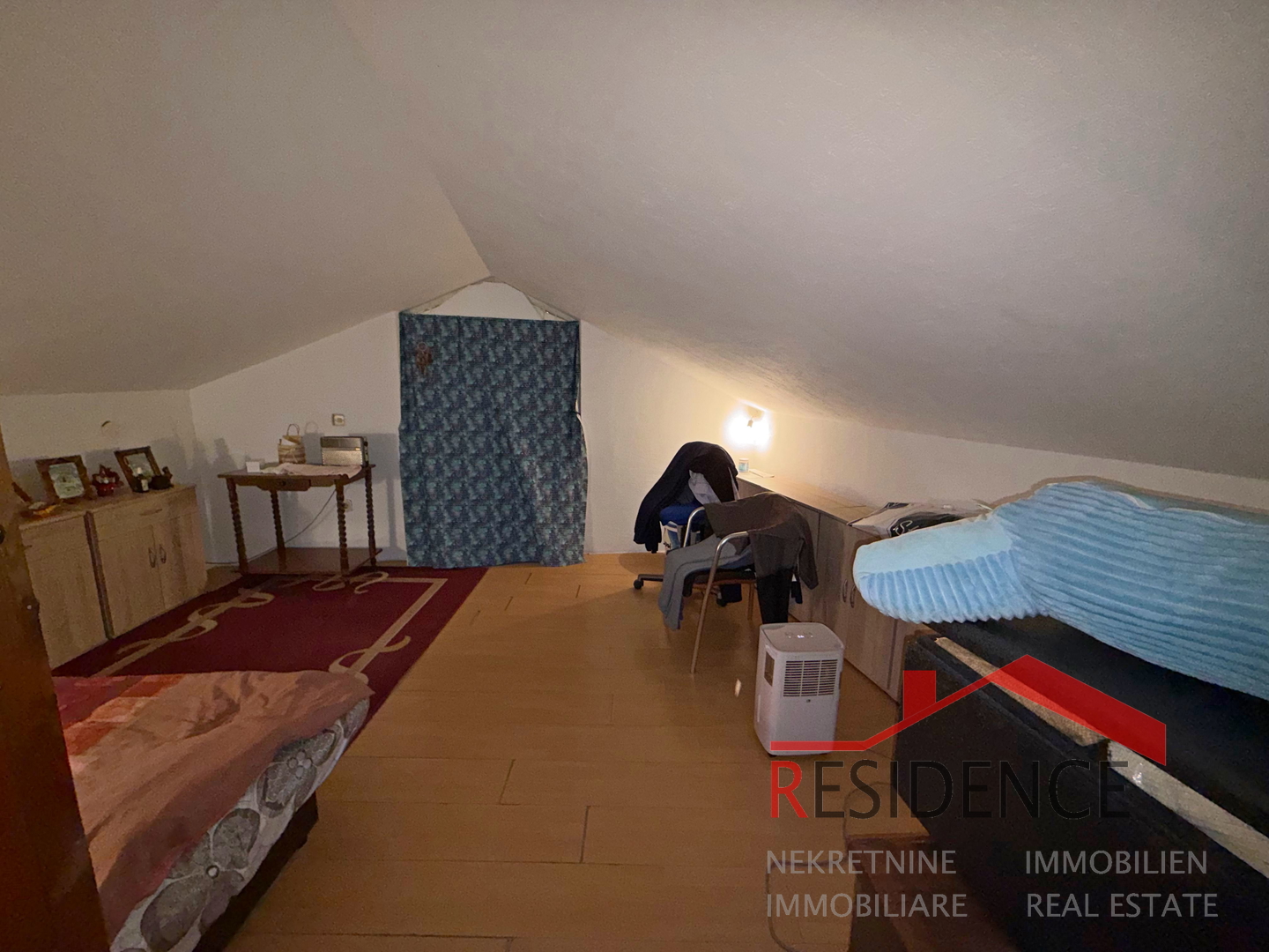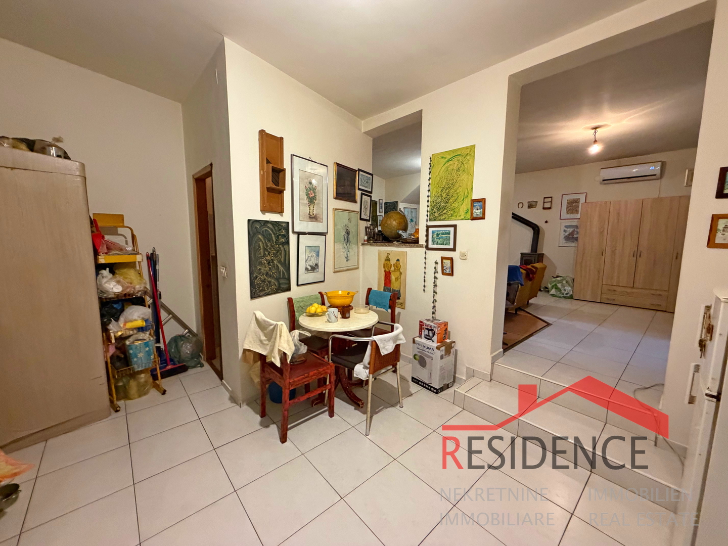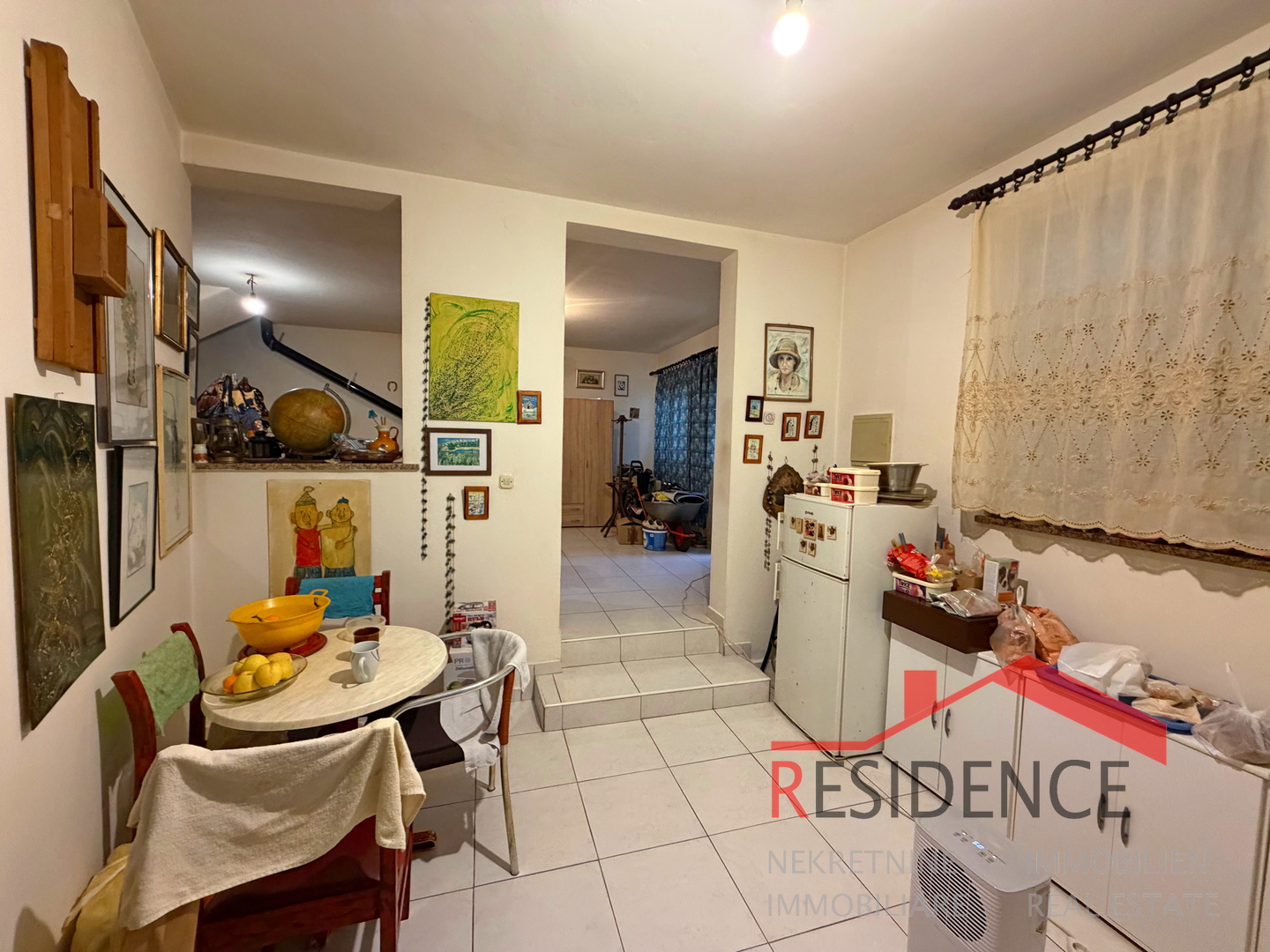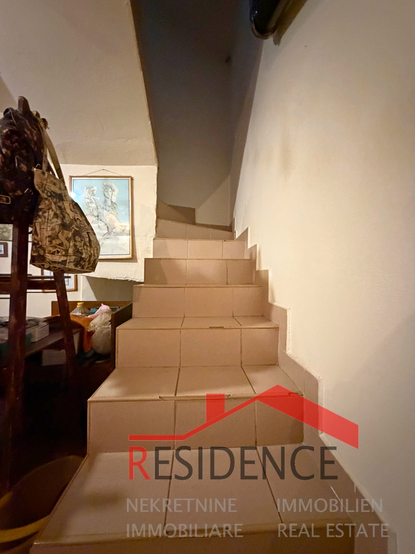 We are selling a family house on 2 floors in Pula, in the Veli Vrh settlement, with a total area of ​​90 m2, on a plot of 152 m2. The ground floor consists of an entrance hall, living room, kitchen and dining room, and a toilet, while internal stairs lead to the first floor where there are 2 bedrooms and a bathroom. Heating/cooling: air conditioning. Wood-burning stove. PVC joinery. Distance to the sea: 1.2 km and to the Amphiteatar 2.4 km. Close to school, kindergarten, shop, etc.