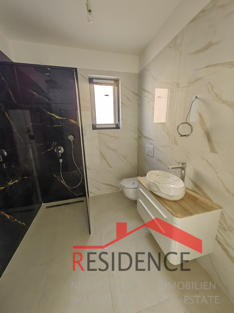 Prodajemo prekrasan novi stan smješten na prvom katu manje stambene zgrade sa svega tri stana, u atraktivnoj i mirnoj lokaciji Pješčane uvale, udaljen svega 400 metara od mora. Stan ukupne površine 101 m2 funkcionalnog je rasporeda te se sastoji od hodnika, tri spavaće sobe, dnevnog boravka s kuhinjom i blagovaonicom, dvije kupaonice, ostave te velike natkrivene terase s pogledom na more. Nekretninu odlikuje kvalitetna gradnja i oprema: podno grijanje provedeno je u svim prostorijama, stan je klimatiziran, ugrađena je kvalitetna vanjska stolarija s komarnicima, a zahvaljujući južnoj orijentaciji stan je izrazito svijetao i osunčan tijekom cijelog dana. Energetski razred je A. Stanu pripadaju dva parkirna mjesta te spremište (šupa). Zbog svoje lokacije i rasporeda, nekretnina je idealna kako za turistički najam, tako i za cjelogodišnje stanovanje.
