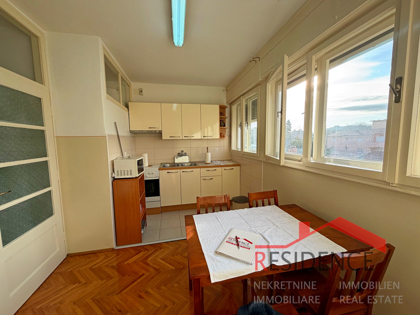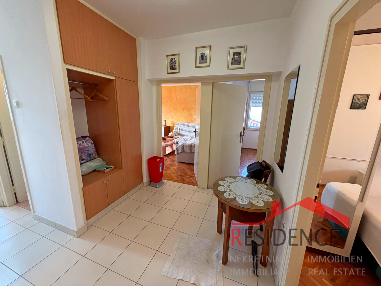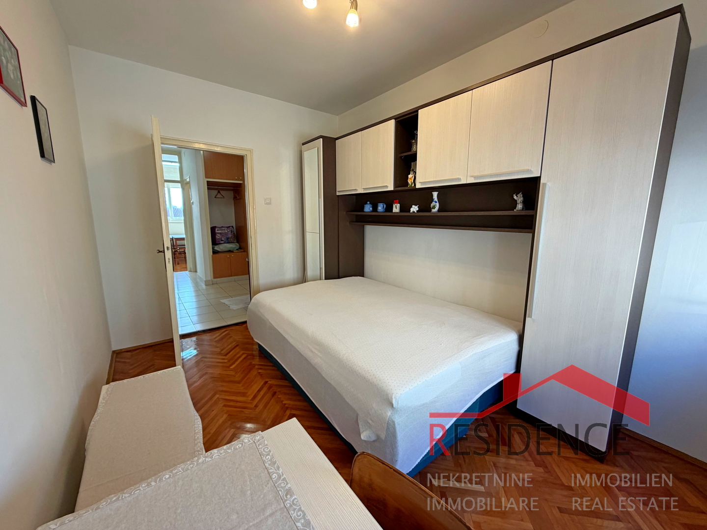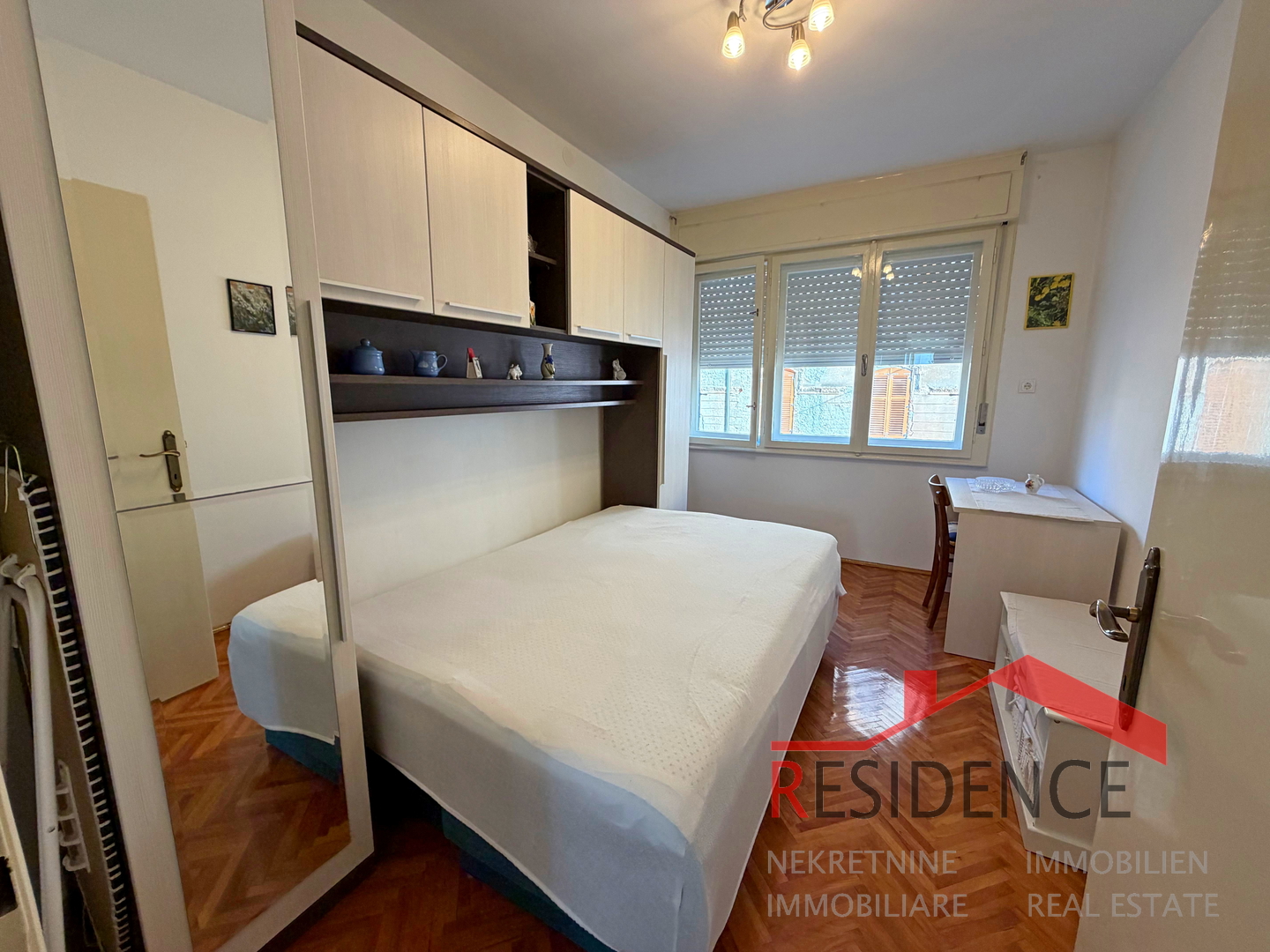 Vendiamo in esclusiva un appartamento a Pola, nel quartiere Kaštanjer, al 2° piano di un piccolo condominio con soli 6 appartamenti. L'appartamento ha una superficie totale di 66 m2 ed è composto da ingresso, 2 camere da letto, un ampio soggiorno, una cucina con sala da pranzo, un ripostiglio, un bagno e una toilette. L'appartamento dispone anche di un ripostiglio (capanno) nel seminterrato dell'edificio. Riscaldamento/raffreddamento: aria condizionata nel soggiorno e stufa in maiolica. Orientamento dell'appartamento: sud-ovest-nord. Lavanderia in comune. Il condominio dispone di un cortile recintato per vivere all'aperto e di un posto auto. L'appartamento è arredato e viene venduto come tale. Dista 400 metri dal centro città e dall'Arena e 600 metri dal mare. Vicino a tutti i servizi.